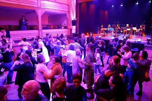 A Festa da Dança começou às 10h00 com a oficina de Mercedes Prieto, continuou tarde dentro com a oficina de Jo Silva e terminou, já bem perto da meia-noite, após um encantador Baile Folk dos Kúmbal, um quinteto composto por Clarinete, Violino, Acordeão, Guitarra e Baixo.