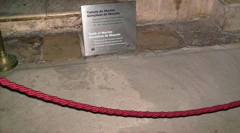 Nota final – a placa identificadora existente no túmulo em Aljubarrota com o seu nome foi alterada recentemente, pois na placa antiga estava o nome Martim Gonçalves de Maçada e actualmente, e bem, está o seu nome correcto, pois «de Maçada» era uma alcunha que ao tempo lhe era atribuída pelo facto de se ter celebrizado com o maço de guerra e a o seu acertivo uso no decorrer da decisiva e histórica batalha de Aljubarrota.