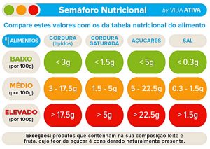 Depois, olhe para o semáforo nutricional, selecionado mais vezes os produtos que contêm menos “vermelhos”. Na ausência de semáforo, analise a declaração nutricional, comparando os nutrientes entre produtos semelhantes, por 100 g, ou faça esta análise com a ajuda do cartão conversor.