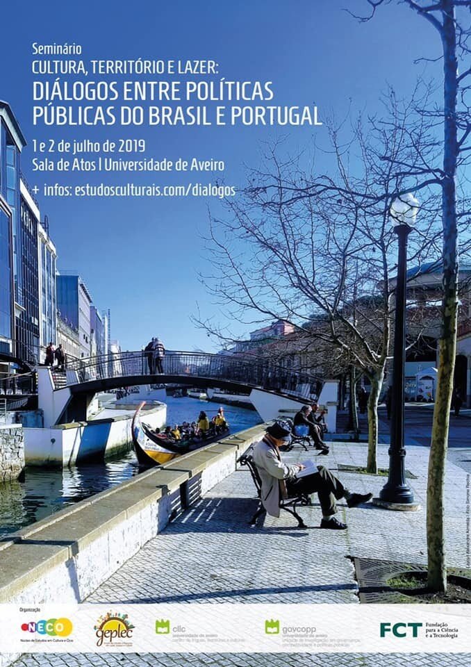 Vai realizar-se, no próximos dias 1 e 2 de julho de 2019, na Sala de Atos da Reitoria da Universidade de Aveiro (Dia 1 : 9h30 – 13h / 15h – 17h30. Dia 2 : 10h – 13h / 15h – 17h30), o “I Seminário de Cultura, Território e Lazer: Diálogos entre Políticas Públicas do Brasil e Portugal”