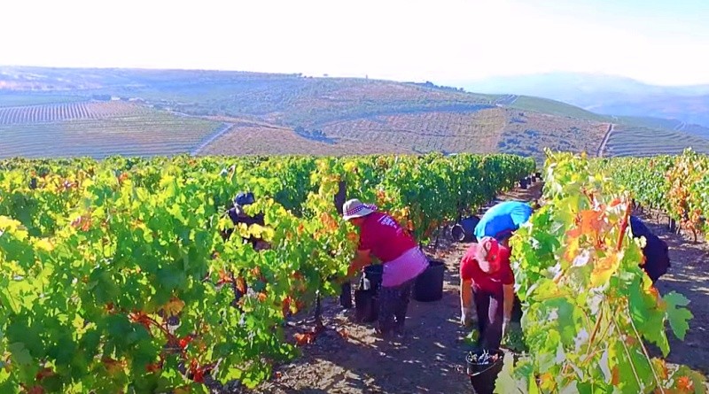 A vindima é geralmente feita à mão devido à dificuldade de mecanização nas encostas íngremes.